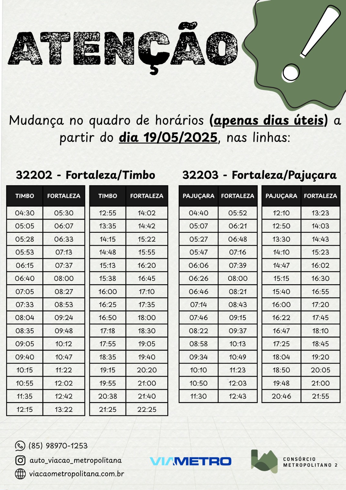 Em virtude da liberação de tráfego na Av. José Jathay e do viaduto sobre a Av. José Bastos, a Linha 085 – Lagoa/Aldeota volta a circular pelo seu itinerário original a partir deste sábado (23/09). O trajeto havia sido modificado devido às obras. A linha volta a trafegar pela Av. José Bastos, seguindo para a Av. Eduardo Girão. Já em direção ao Terminal Lagoa, os ônibus seguem pela Av. Eduardo Girão, um pequeno trecho da Av. José Jathay e retornam para a Av. José Bastos. A Linha 085 – Lagoa/Aldeota deixa de passar pela Avenida João Pessoa e Rua Júlio César, que já são atendidas por outras linhas.